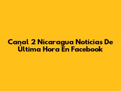 Canal 2 Nicaragua Noticias De Última Hora En Facebook